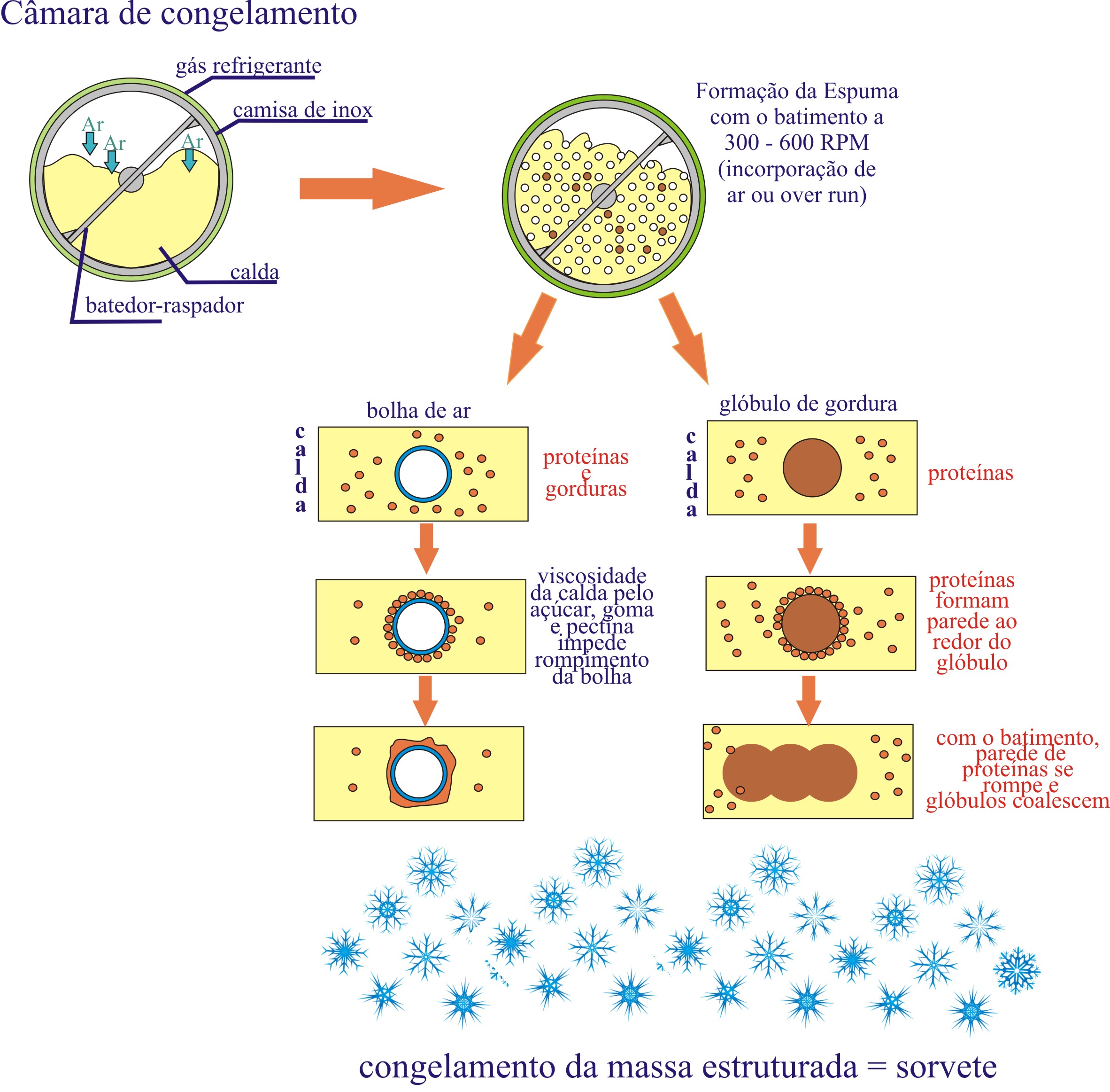 A calda é então batida e congelada simultaneamente de forma a se obter a massa do sorvete.